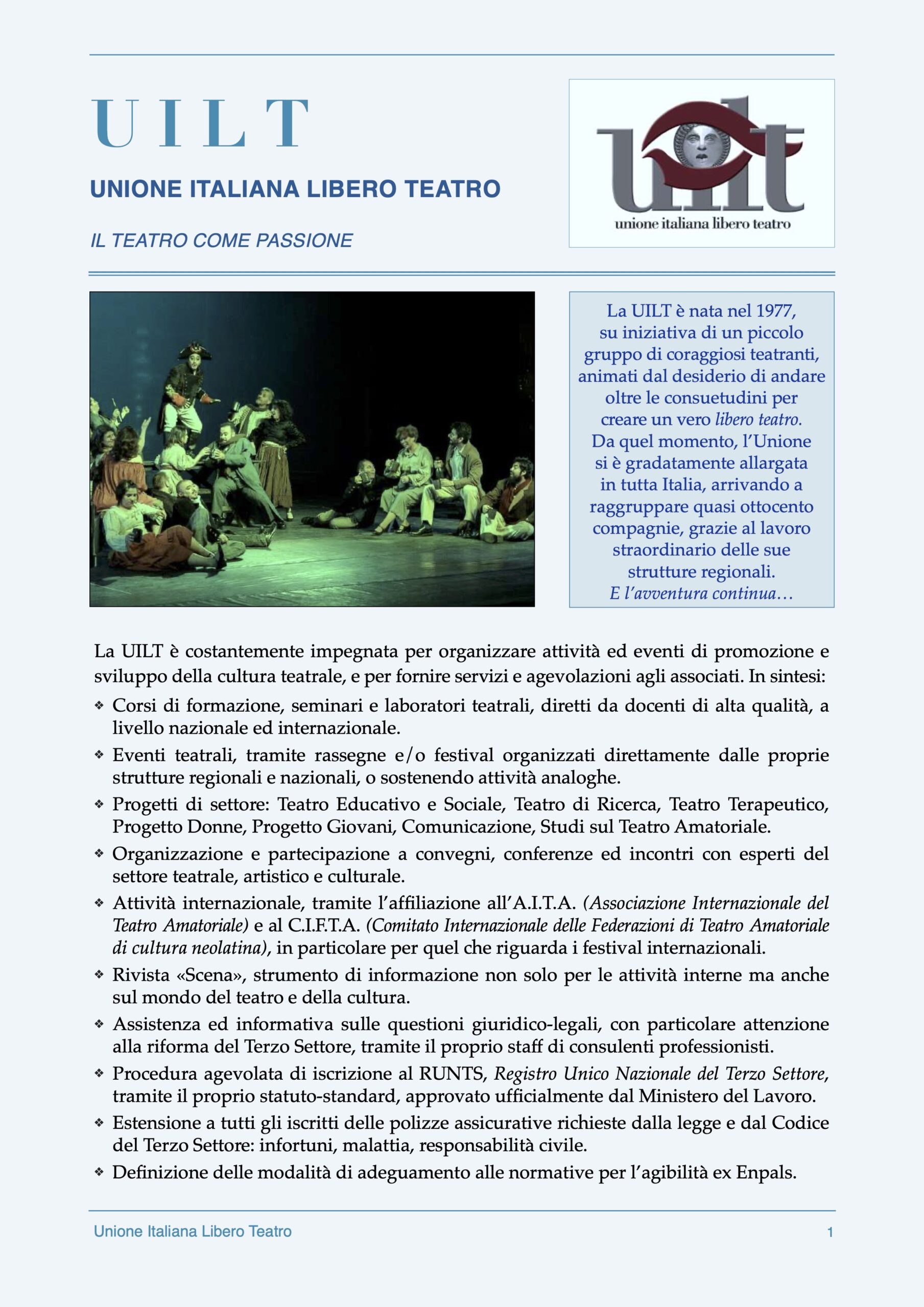 È importante iscriversi prima dell’inizio dell’anno e comunque entro il successivo 31 gennaio (come Soci ordinari) per poter usufruire dei vantaggi e delle agevolazioni offerte dalla UILT, in particolare: